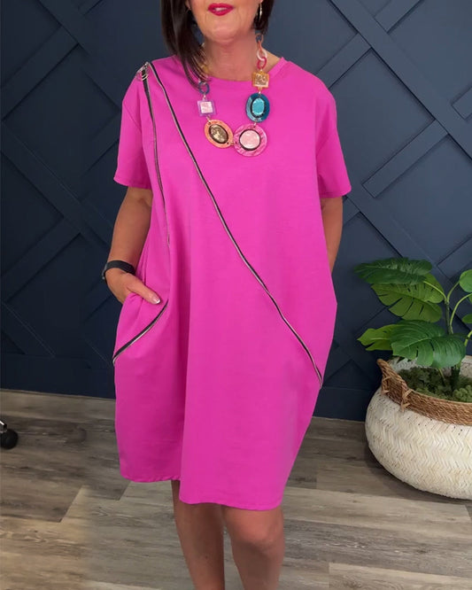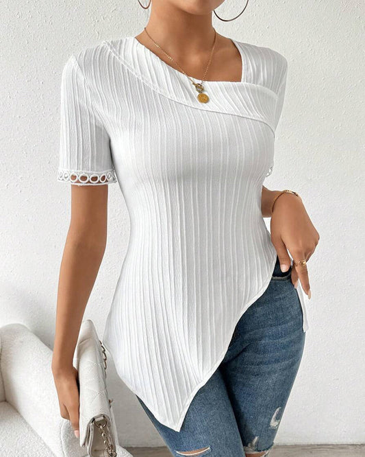 Pull irrégulier sans manches à col rond de couleur unie à la mode