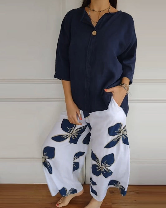 Lässiges Hosenset mit Rundhalsausschnitt und Print