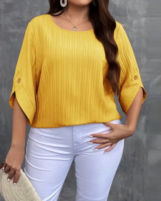 Kurzärmlige Bluse mit Rundhalsausschnitt und Struktur