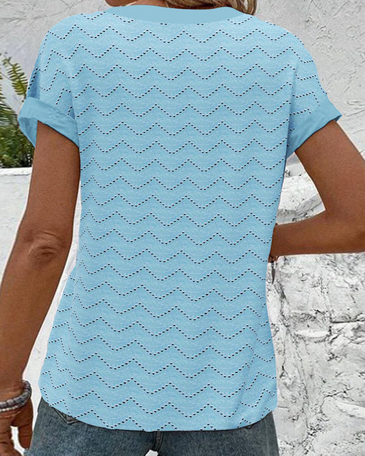 Kurzarm-T-Shirt mit V-Ausschnitt und Hohlsaum
