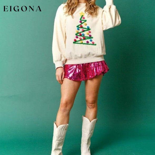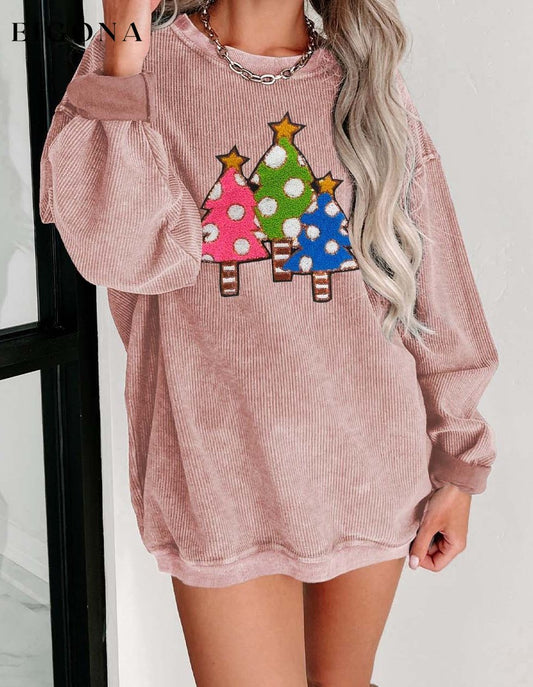 Sweat-shirt de Noël à col rond brodé sapin de Noël pour femme