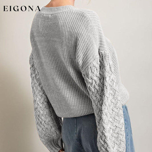 Pull gris clair à manches en tricot torsadé et épaules tombantes