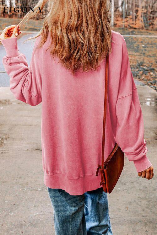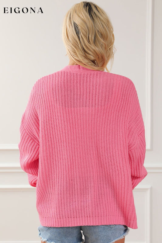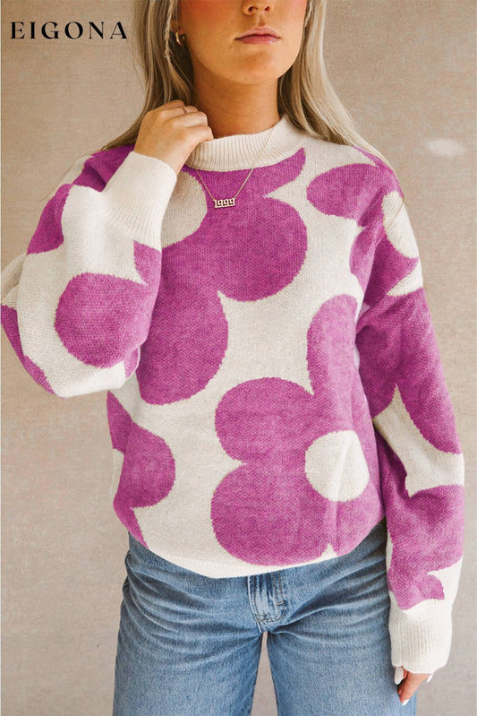 Pull rose vif à épaules tombantes à motif de grandes fleurs