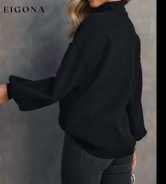 Pull en tricot noir à col roulé, épaules tombantes et manches bulles