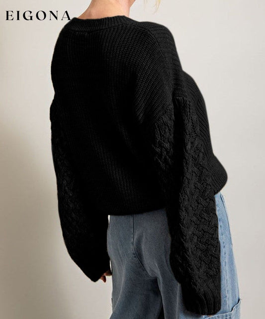 Pull noir à épaules tombantes et manches en tricot torsadé