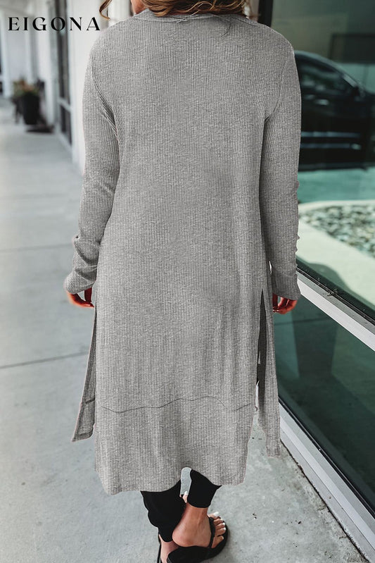 Cardigan gris fendu boutonné côtelé