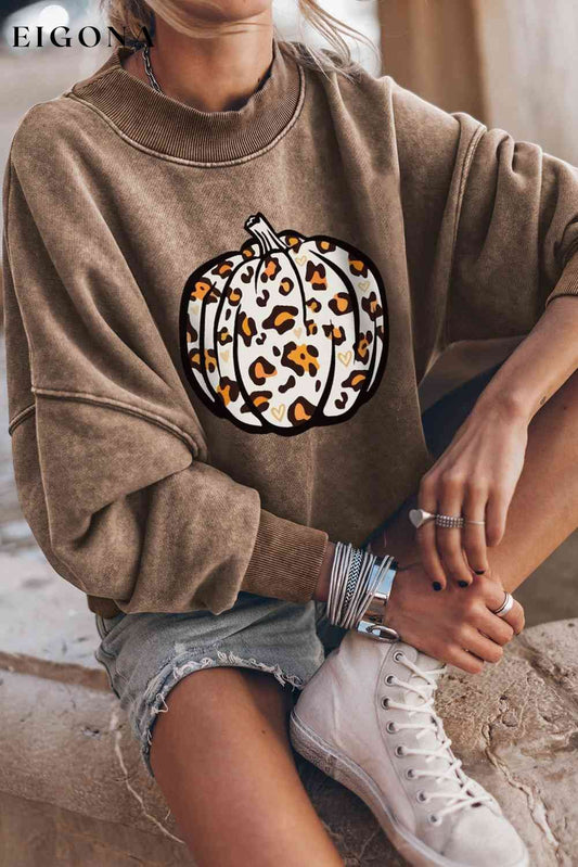 Sweat-shirt graphique citrouille à col rond et épaules tombantes