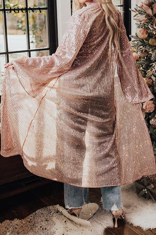 Rose Tan - Cardigan long à sequins ouvert sur le devant