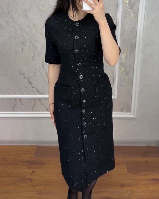 Elegante abito con fiocco in tinta unita e maniche a tre quarti