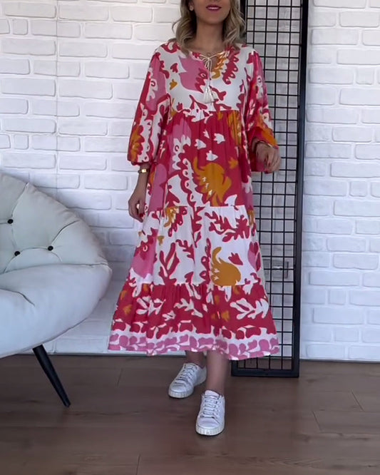 Abito con maniche a 3/4 con stampa geometrica Boho