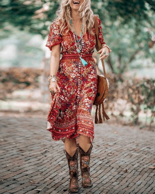Gonna da spiaggia per vacanze bohémien, top + gonna sexy con scollo a V