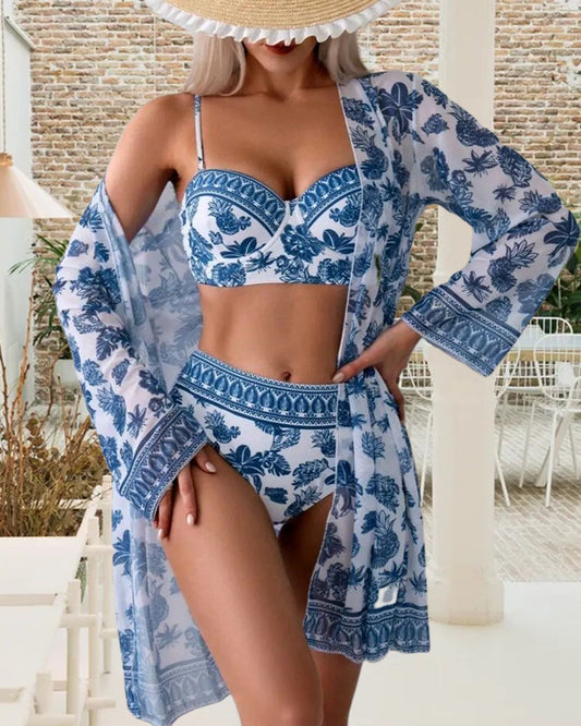 Costume da bagno bikini a triangolo copricostume con stampa botanica