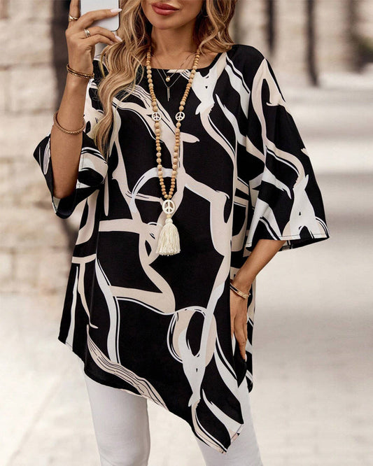 T-shirt girocollo casual con pittura a olio e stampa di immagini spaziali
