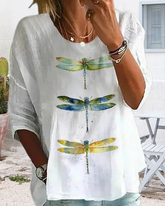 Maglia casual a maniche lunghe con tasca e stampa leopardata e scollo rotondo
