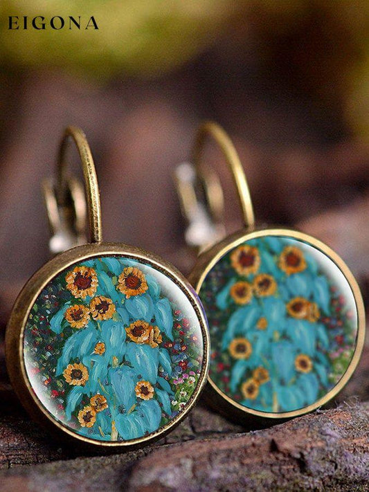 Orecchini vintage con pittura a olio di girasole