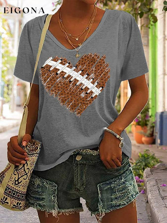 T-shirt casual con scollo a V e stampa di cuori da calcio da donna