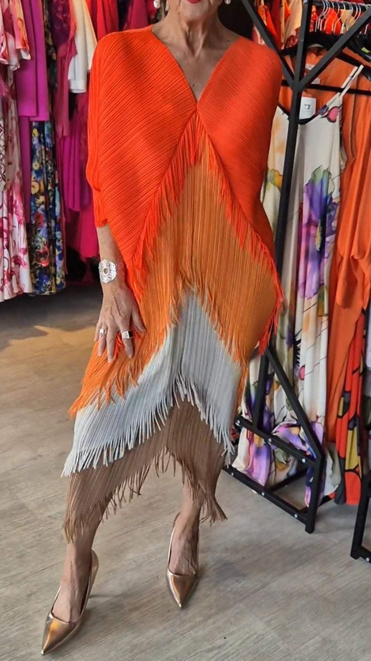 Abito da donna con frange e scollo a V e maniche a pipistrello