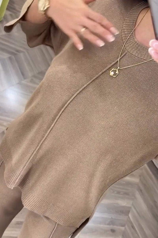Abito da donna con spacco irregolare a maniche lunghe e cardigan tinta unita