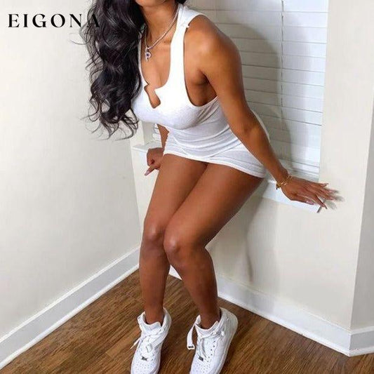 Abito tinta unita senza maniche monopetto con scollo tondo sul retro