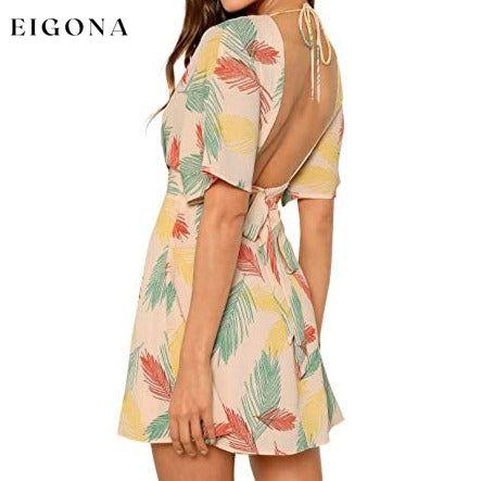 Abito corto da donna con scollo profondo floreale e nodo sul davanti