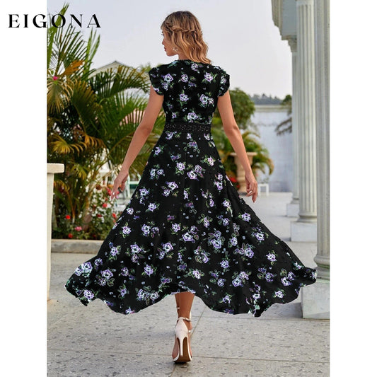 Abito da donna a trapezio con stampa floreale su tutto il corpo e orlo alto e basso