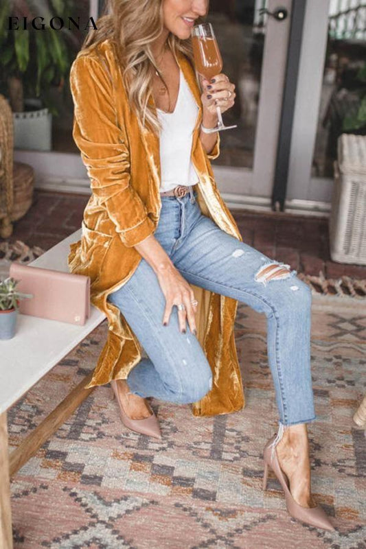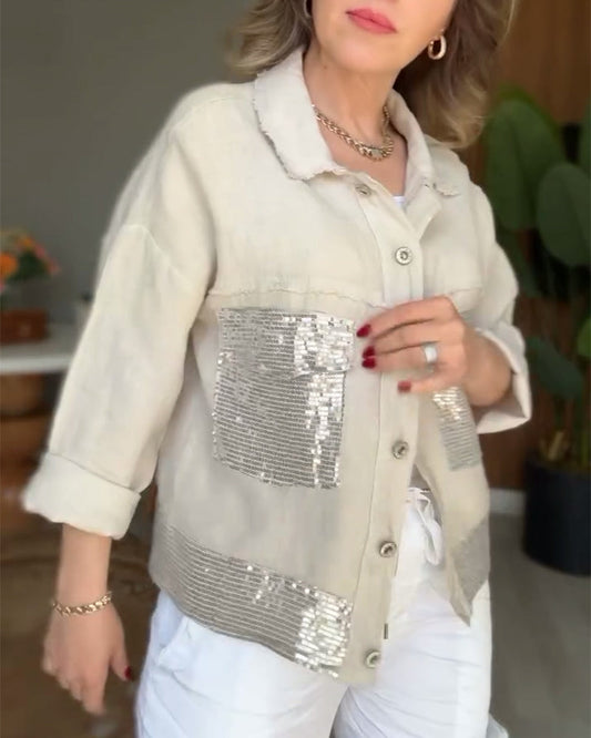 Elegante cappotto con tasche e bottoni in paillettes sul risvolto
