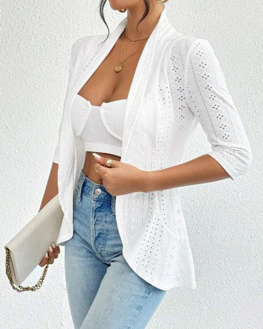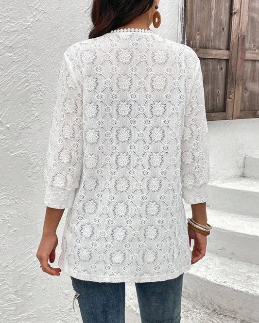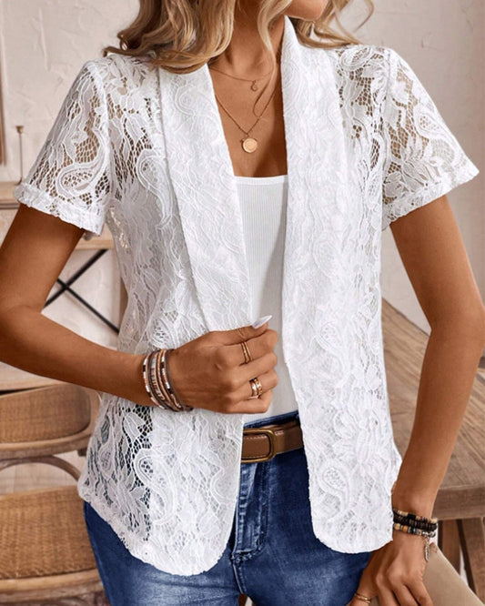 Cappotto in pizzo con revers a maniche corte tinta unita