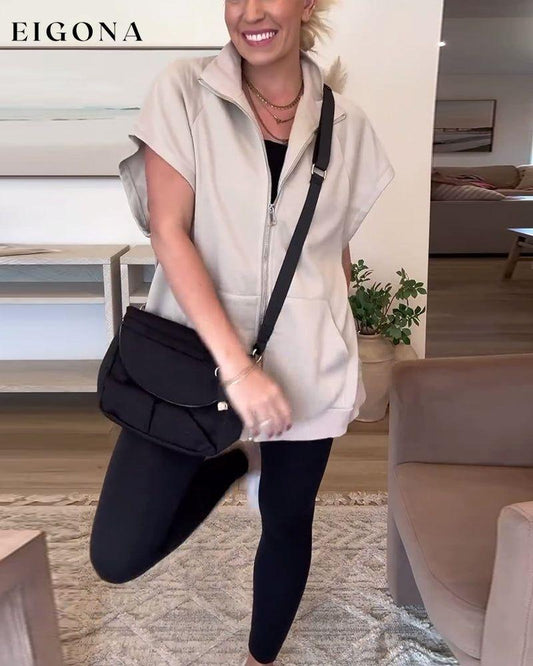 Cappotto casual a maniche lunghe con cerniera in tinta unita