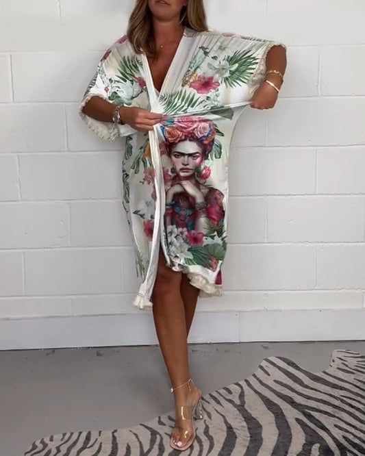 Cappotto a mezza manica con stampa floreale dal carattere casual