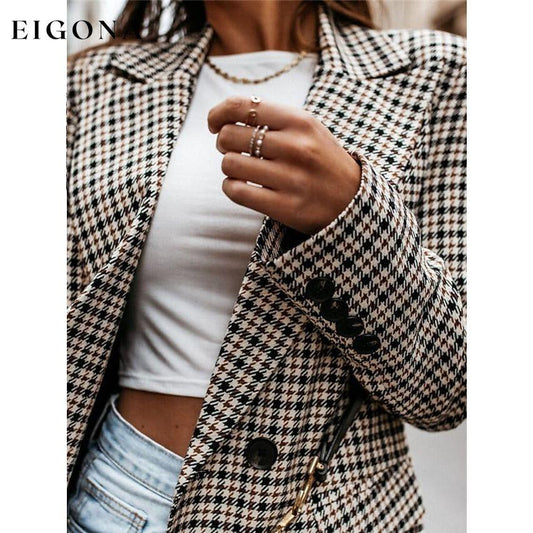 Giacca casual da donna Giacca casual a maniche lunghe trapuntata a quadri scozzesi