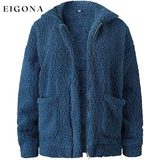 Cappotto da donna con cerniera in finto shearling in pile con risvolto casual