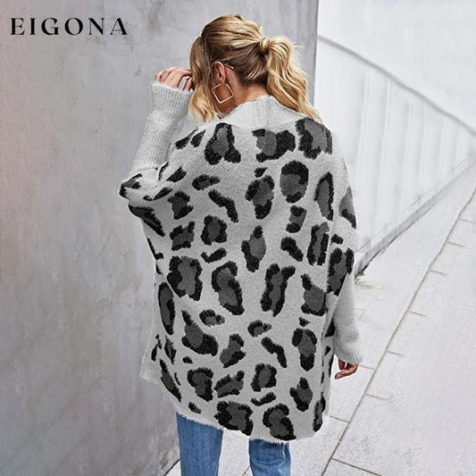 Cardigan lavorato a maglia con stampa leopardata a maniche lunghe da donna