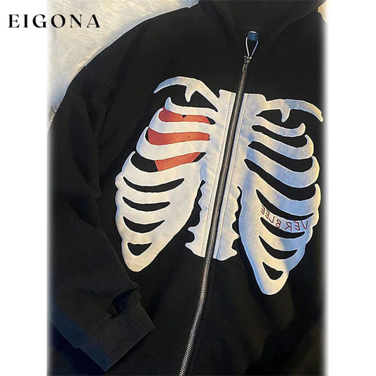 Felpa con cappuccio con lettera scheletro e zip da donna