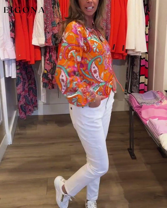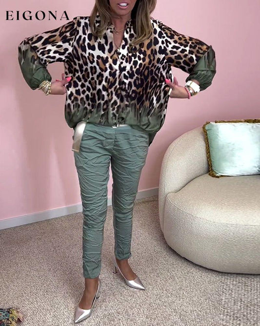 Blusa con scollo a V a maniche lunghe e stampa leopardata
