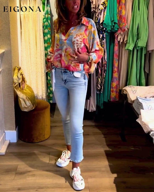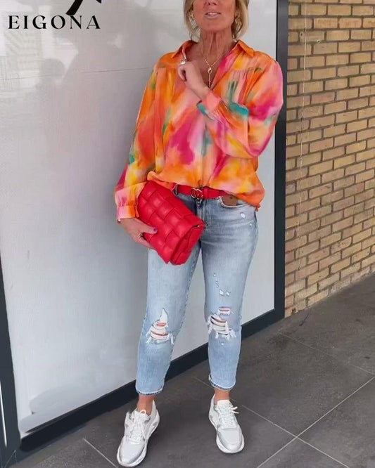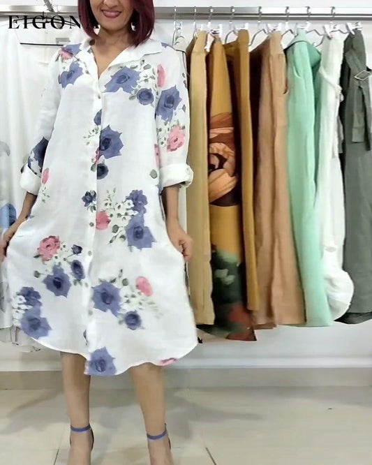 Abito a trapezio casual a maniche lunghe con scollo a V stampato con pittura a olio alla moda