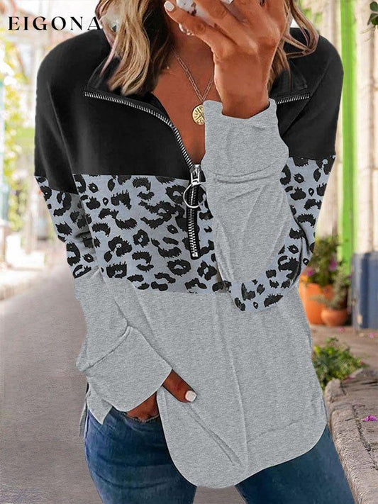 Felpa a maniche lunghe con scollo a V leopardata con pannelli larghi