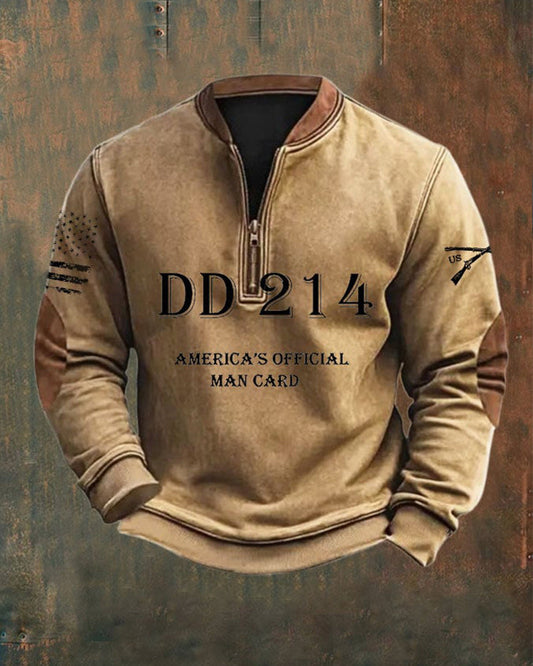 Felpa con cerniera e colletto veterano retrò DD-214 da uomo