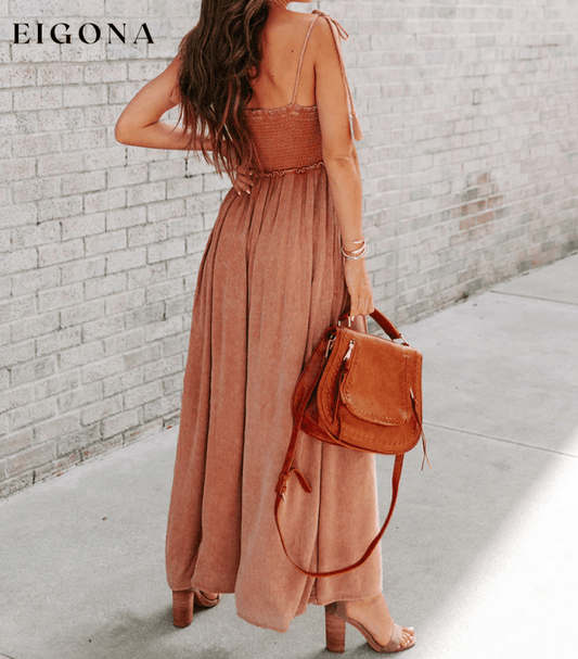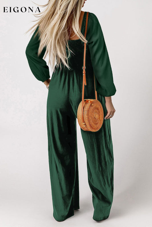 Tuta verde a gamba larga con maniche lunghe e collo quadrato smock