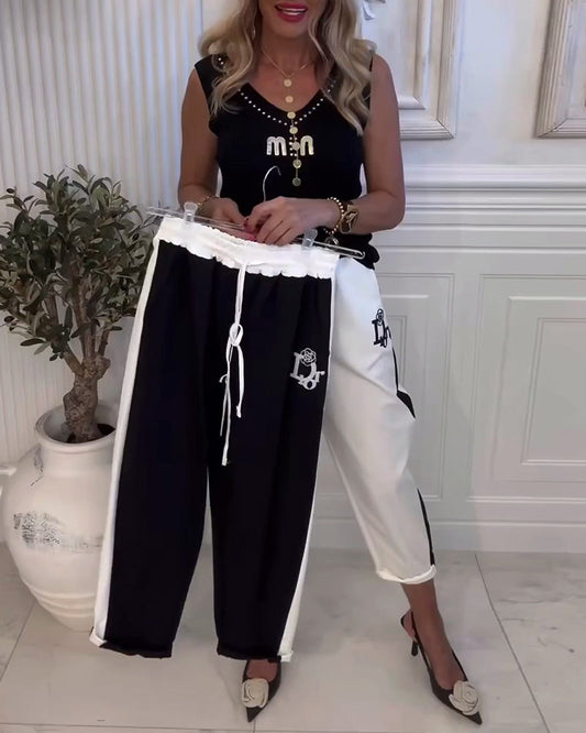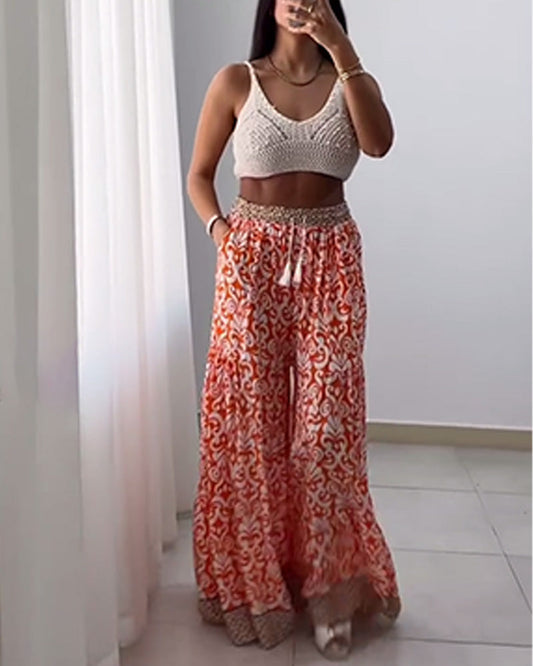 Pantaloni a gamba larga con cuciture in pizzo alla moda