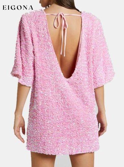 Miniabito a mezza manica con lacci in paillettes sul retro