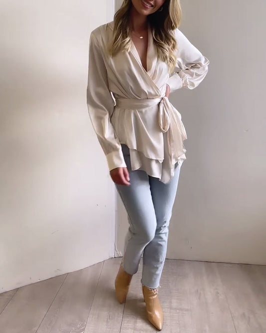 Elegante cappotto con risvolto stampato e lacci a maniche lunghe