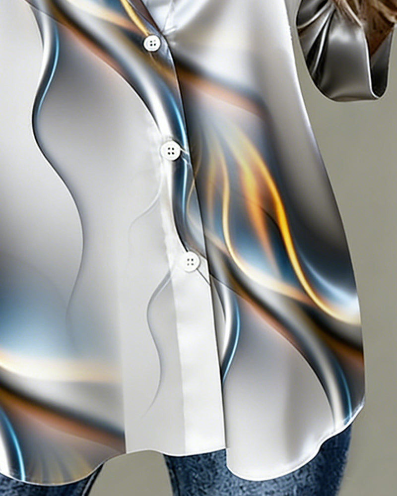 Colorful Draped Collared Long-Sleeved Shirt