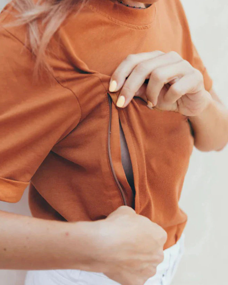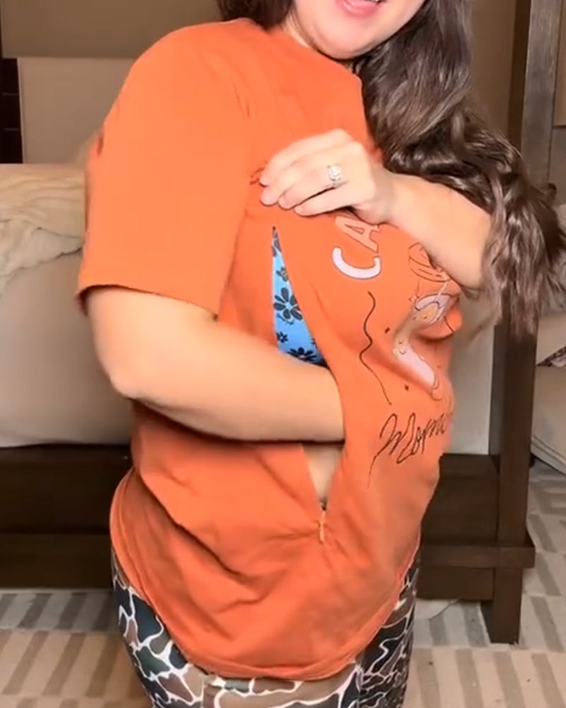 Printed Crew Neck Nursing T-Shirt