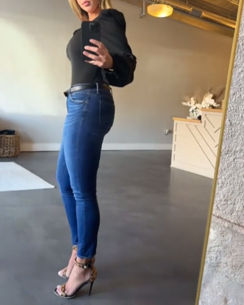 Porta il metro attorno ai fianchi e misura intorno alla parte più ampia del sedere