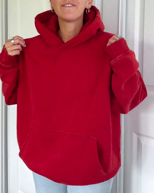 Lockerer Kapuzenpullover mit einfarbiger Tasche