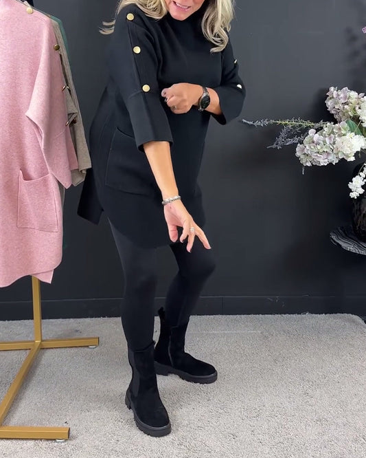 Lässiges Pulloverkleid mit einfarbigem Taschenschlitz