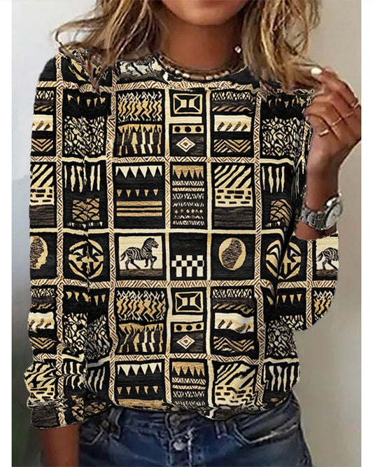 Lässiges Oberteil mit Rundhalsausschnitt und geometrischem Tiermuster