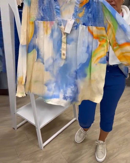 Langarmshirt mit V-Ausschnitt und Farbverlauf