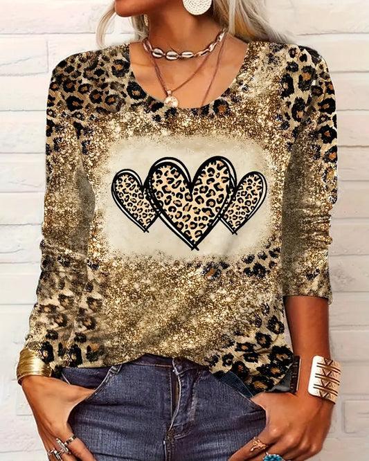 Lässiges Oberteil mit Leoparden- und Herz-Print in Colorblock-Optik