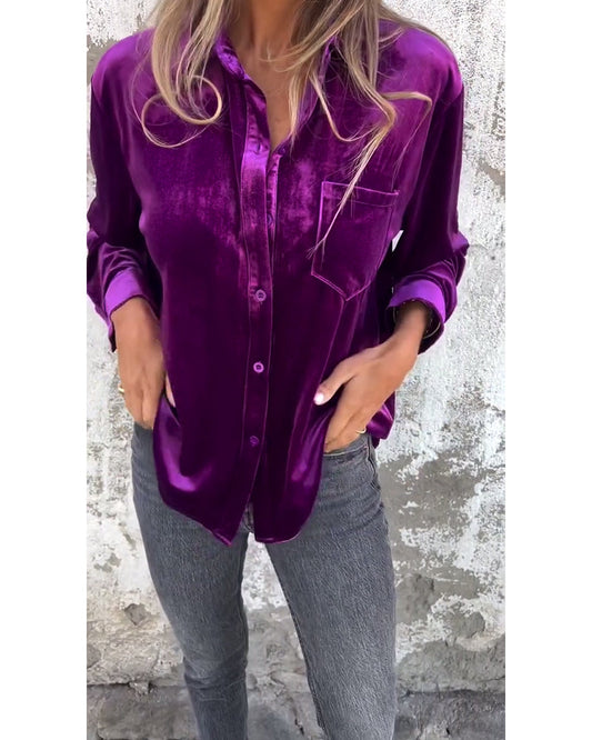 Lässige strukturierte Button-Down-Bluse mit Revers